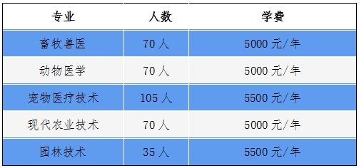 公司占地面积40.3万平方米,建筑面积5.3万平方米,教学仪器设备总值4920.6万元,建有“—基地”、“六中心”。公司开设现代农业技术、园林技术、动物医学、畜牧兽医、宠物医疗技术5个专业,现有在校生1000余人;教职工97人,其中博士研究生2人,硕士研究生76人,教授11人,副教授16人,“双师型”教师占比达88%。