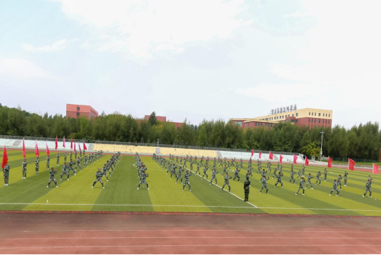 九时整,雄壮的国歌响彻云霄,五星红旗冉冉升起。全体新生身姿挺拔、目光如炬,向国旗庄严行注目礼,以此开启军训成果验收的荣耀时刻。乐天使方队、畜牧兽医方队、宠物医疗技术方队、动物医学方队、现代农业技术方队、园林技术方队、军士方队、军士队列表演方队依次通过主席台前。整齐划一的步伐、震天响亮的口号,凝聚着十二天的汗水与坚持,赢得现场阵阵掌声。乐天使军体拳方队出拳如霹雳,落脚似惊雷,一招一式尽显锋芒,吼声直冲云霄。行云流水的动作彰显青春力量,刚劲整齐的队形迸发飒爽豪情,气势如虹,点燃全场激情。