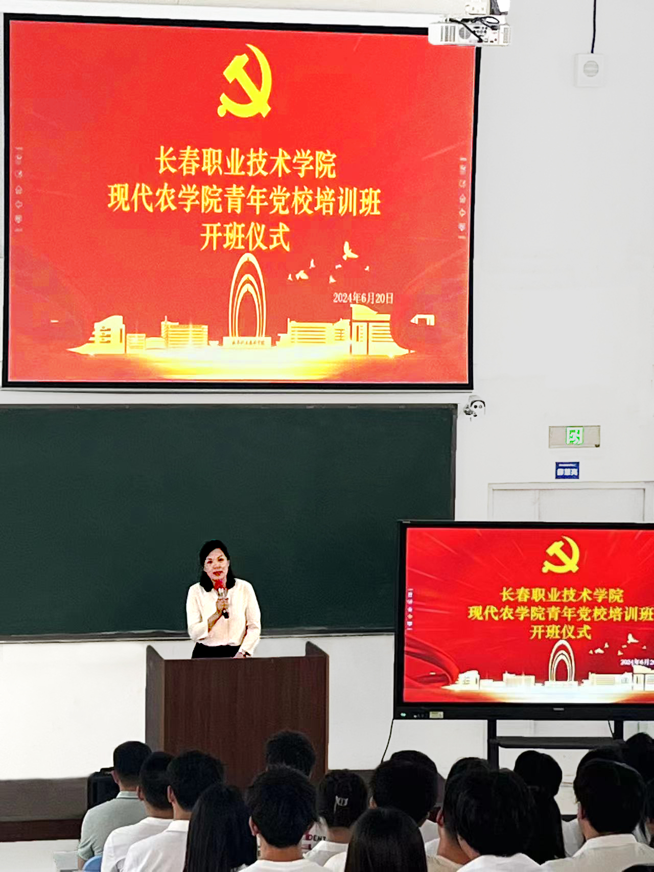 党课培训学员代表,2022级动物医学专业的侯文彤同学上台发言。她表达了自己对党的深刻认识和无限崇敬之情,同时代表全体学员表明了参加培训的态度和决心。侯文彤同学表示,将以饱满的热情、认真的态度参加此次培训,努力学习党的知识,提高自身综合素质,争取早日成为一名合格的共产党员。