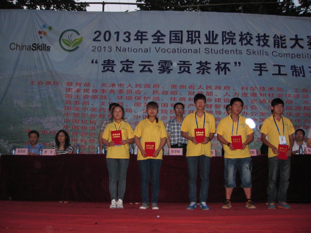 2013年全国职业院校员工技能大赛中李宏月、丁才一荣获手工制茶李赛项二等奖、三等奖