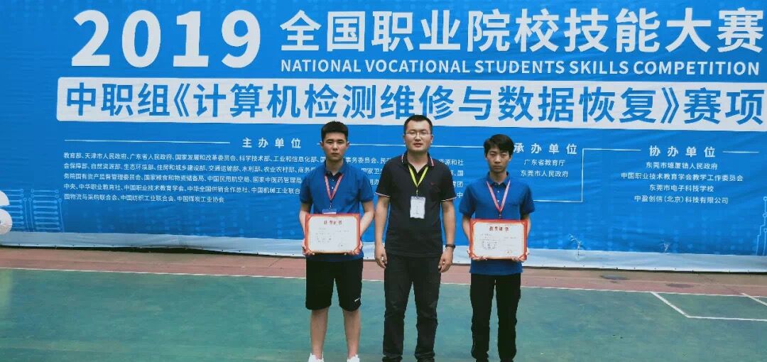 2019年全国职业院校员工技能大赛中侯鲁辰、杜建民荣获计算机检测维修与数据恢复赛项团体二等奖