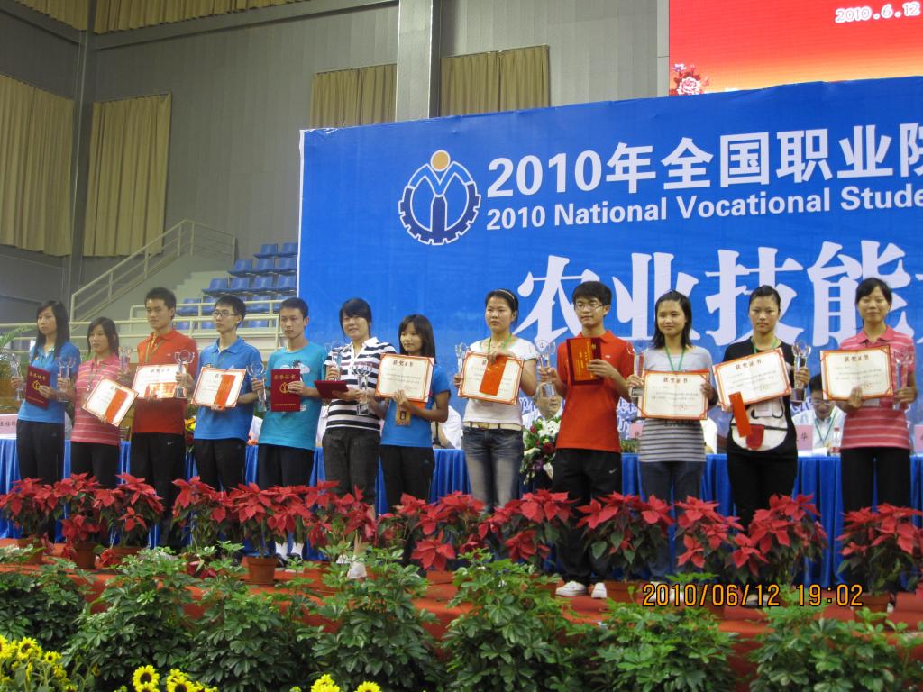 2010年全国职业院校员工技能大赛中刘月明、徐悦强荣获动物外科手术赛项团体一等奖