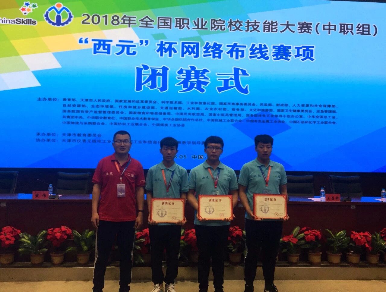 2018年全国职业院校员工技能大赛中徐世鑫、赵祥东、石俊琦荣获网络布线赛项团体三等奖