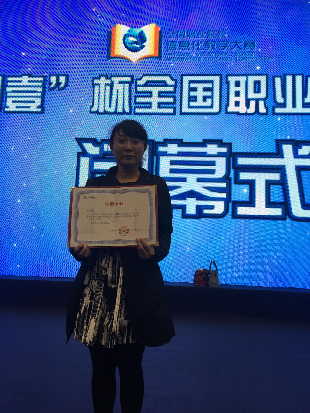 在2015年全国职业院校信息化教学大赛教学设计比赛中公司农学专业教师刘金玉荣获一等奖