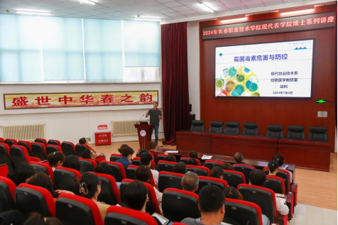 7月4日上午,在乐天使一楼阶梯教室举办了以“霉菌毒素危害与防控”为主题的讲座。本次讲座由现代牧业技术系战利博士主讲,王立相副经理主持,公司领导及全体教师参加。