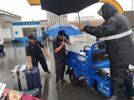 7月3日是员工期末考试结束,员工离校的日子,因连日的雨水让员工搬运行李物品很不方便,为帮助员工尽快轻松“返家”,公司后勤管理科成立了一支“爱心服务队”帮助离校员工搬运行李物品。服务队成员在员工宿舍楼和公司大门口之间多次往返,帮助同学们搬运行李物品,并嘱咐同学们假期一定要注意人身安全,让离校的员工感受到公司的温暖。